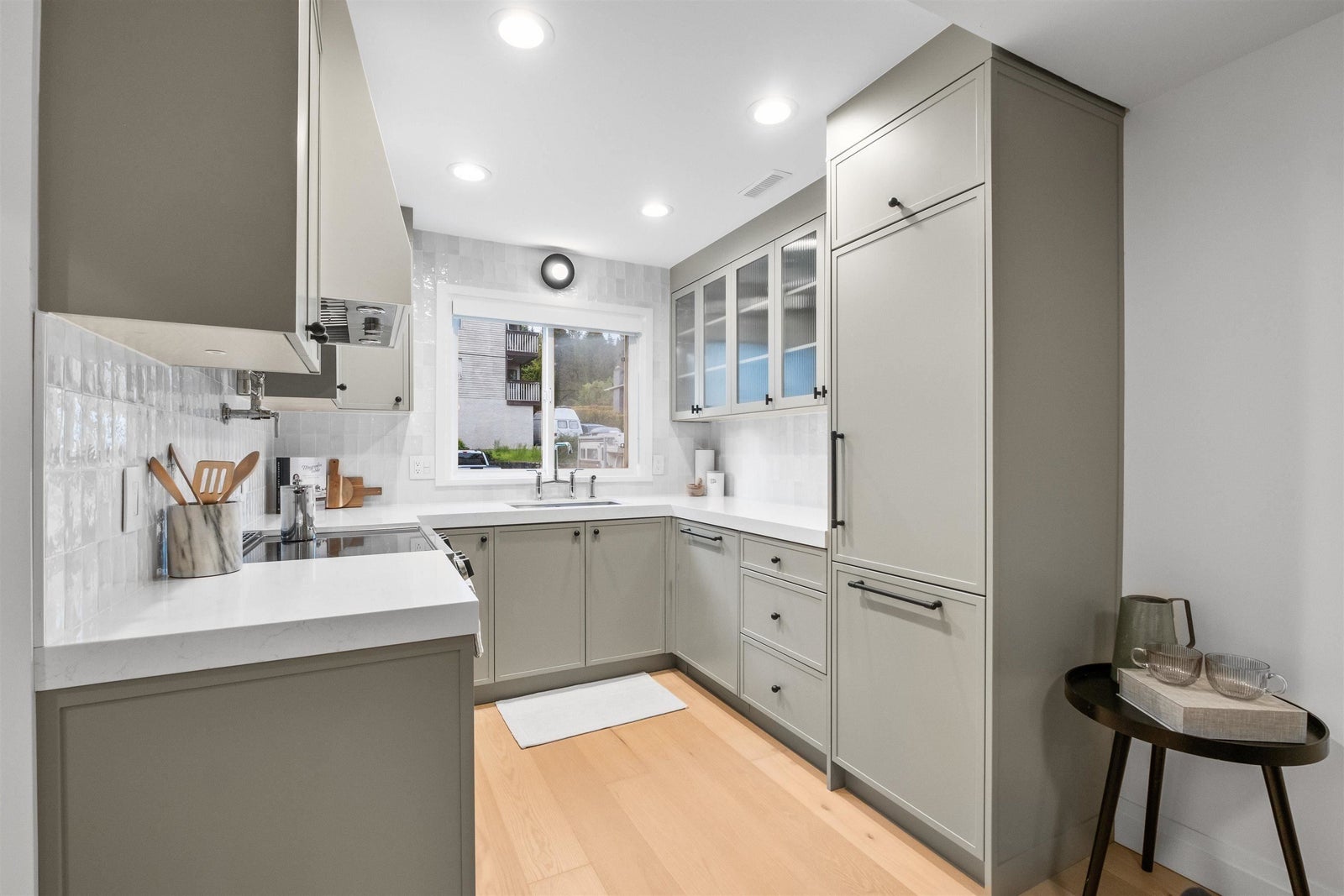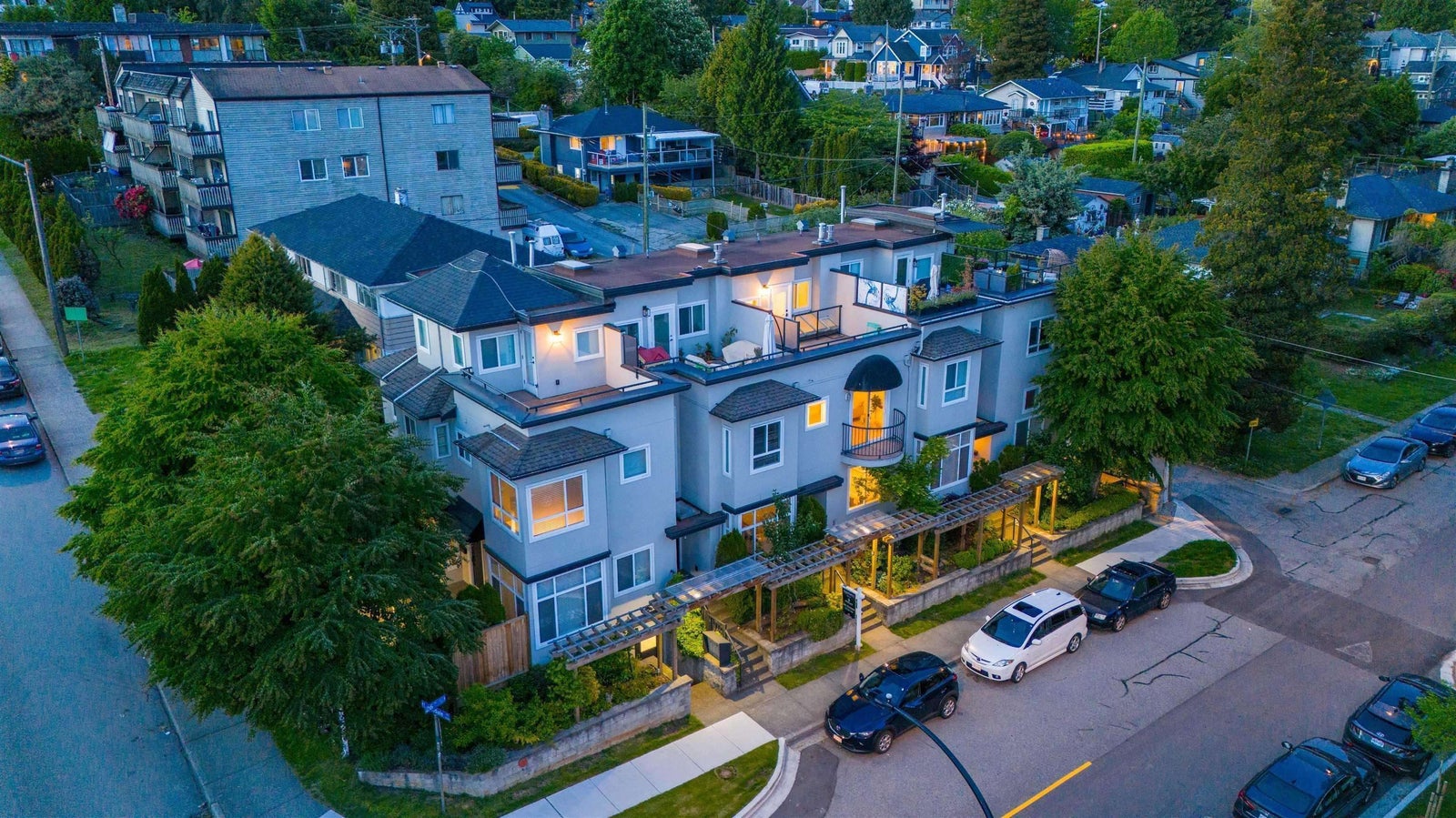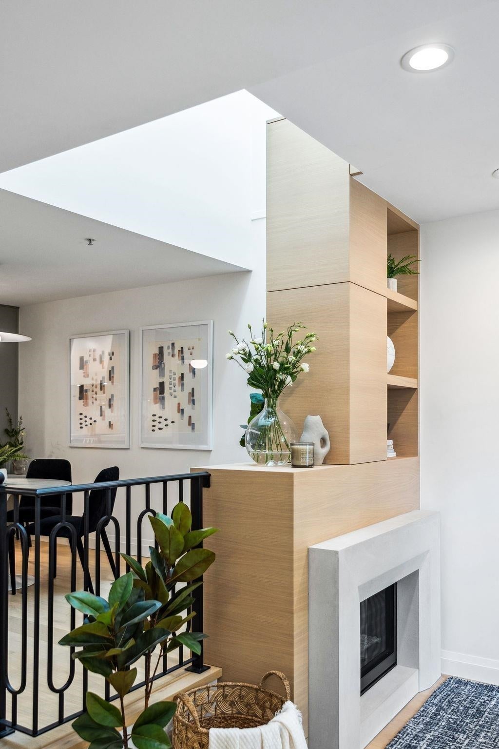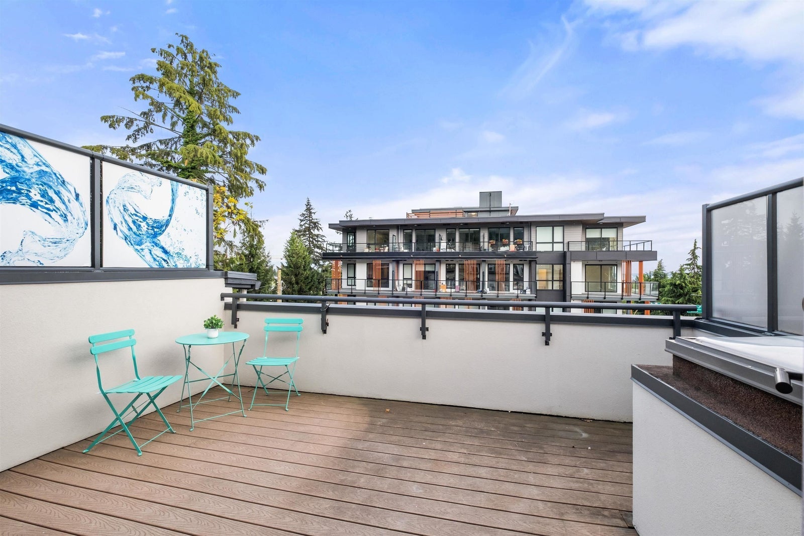 View this beautifully renovated designer townhome in the prestigious Upper Lonsdale neighbourhood. This stunning townhome exudes style & class with timeless design features that elevate your lifestyle. The fireplace feature is the centrepiece of the main living area, while the custom cabinetry & panelled appliances in the kitchen offer elegance & refinement. Designer features such as white oak floors, beautifully wallpapered bathrooms, designer wrought iron railings, & custom cabinetry make this space one of a kind. The primary bedroom offers an oversized walk-in closet & skylight ensuite with a stand-up glass shower. Enjoy the stunning views on your expansive rooftop lounge, perfect for entertaining summer barbecues or relaxing in the sun.