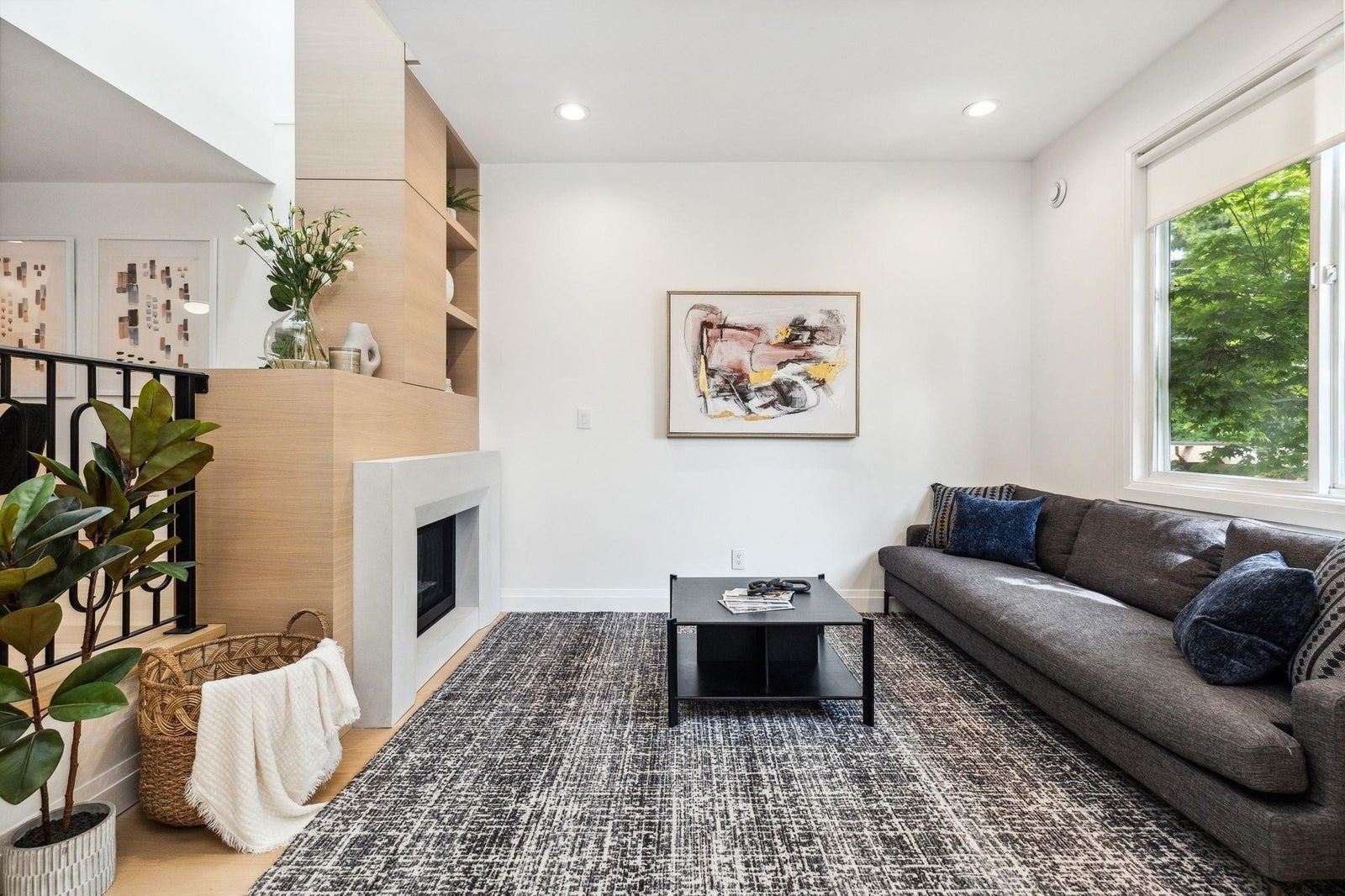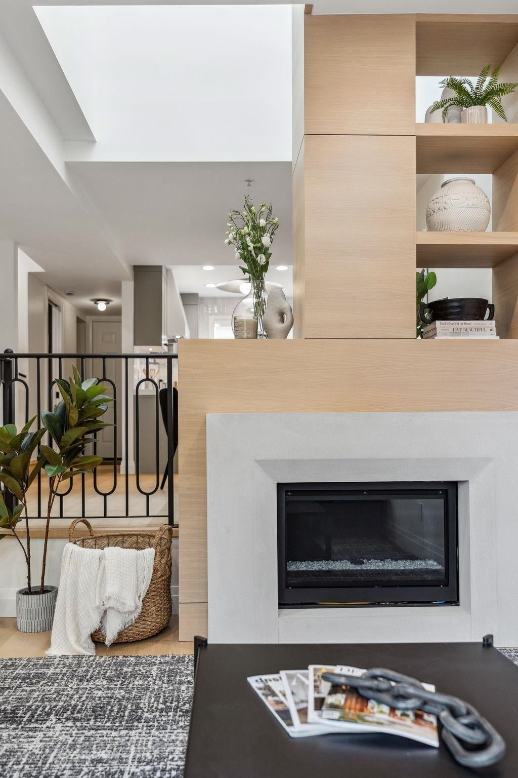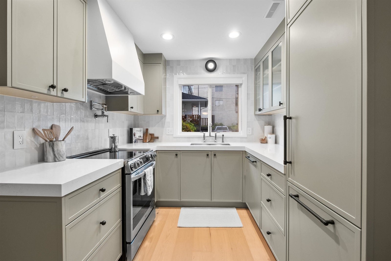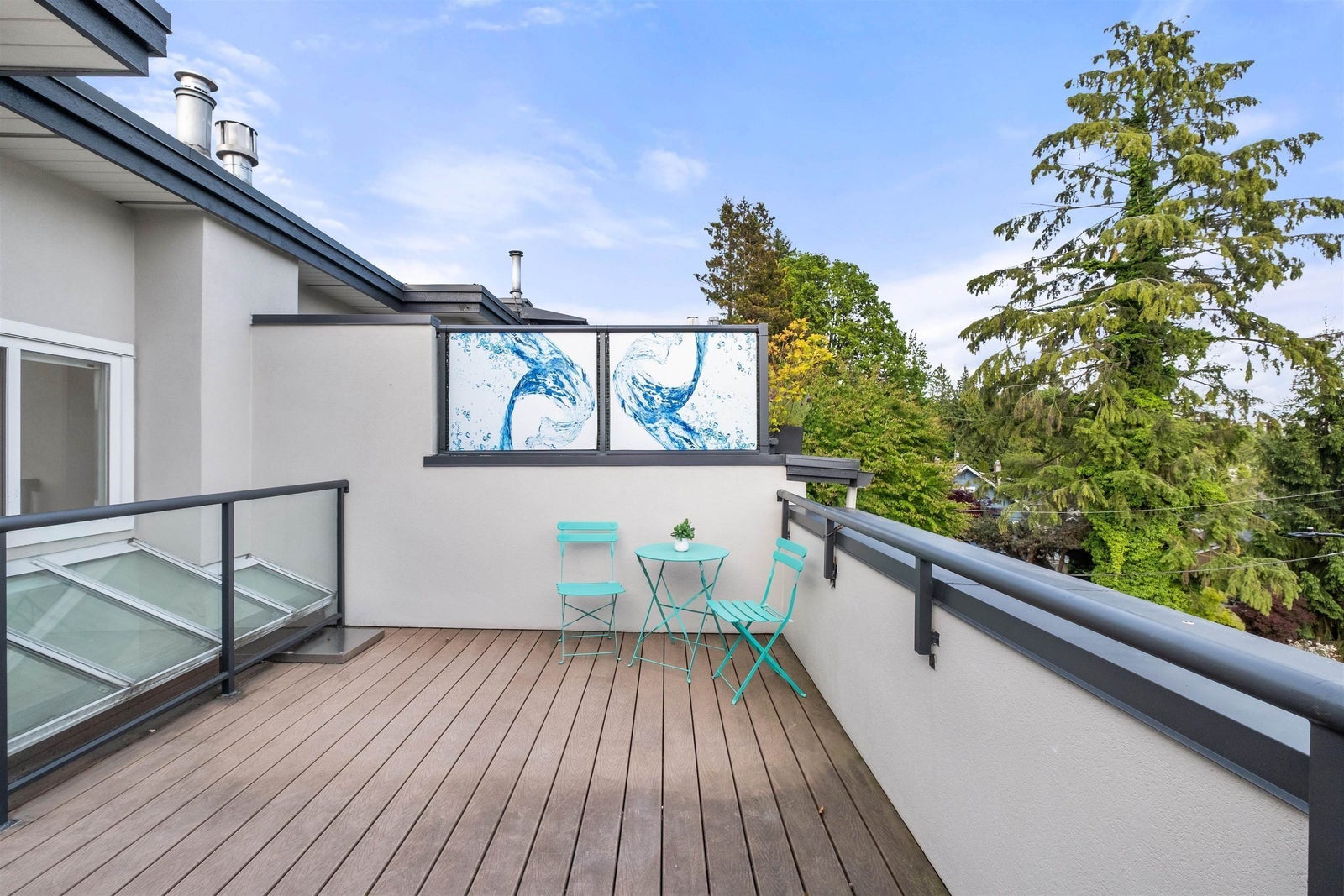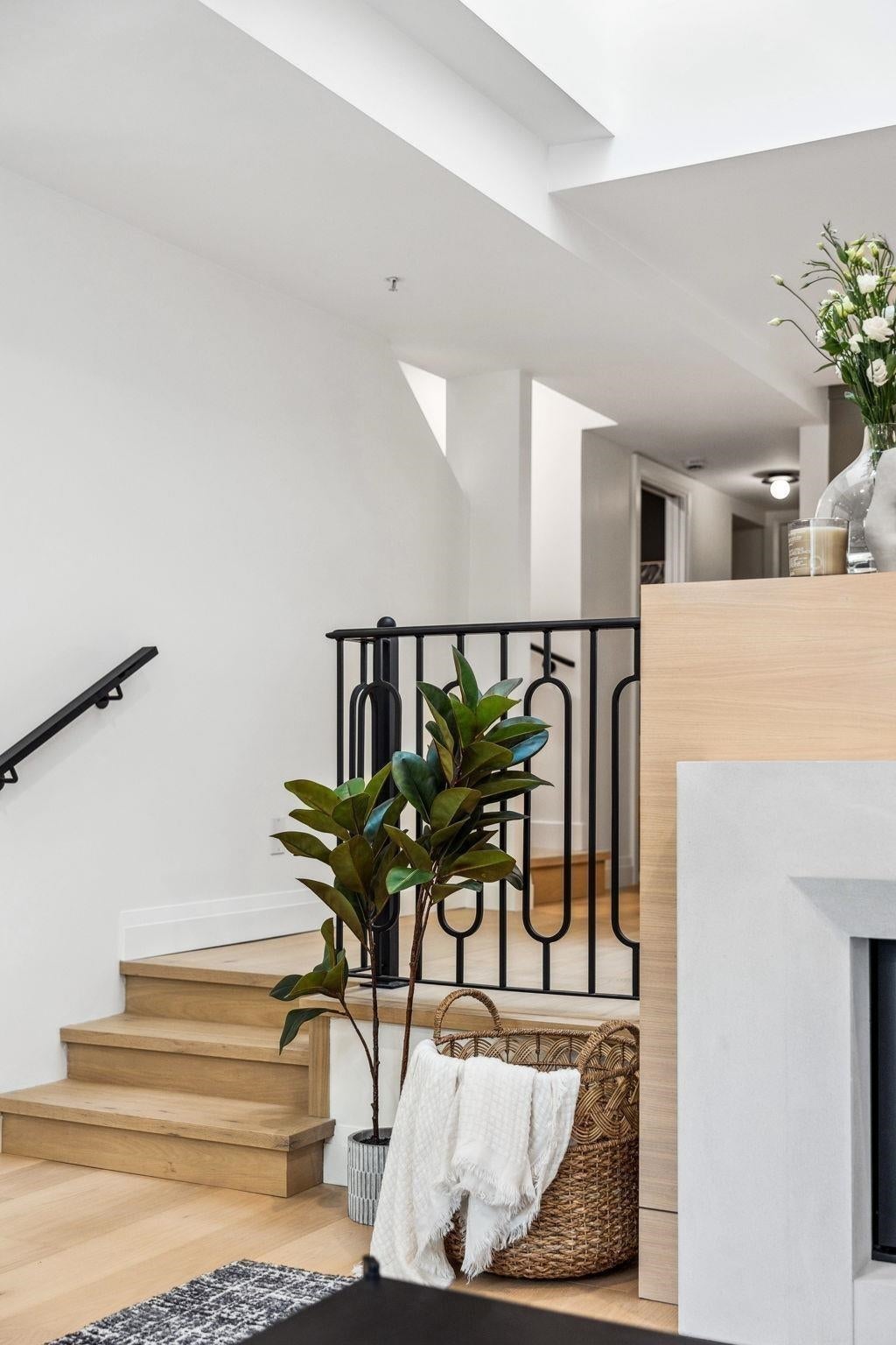 View this beautifully renovated designer townhome in the prestigious Upper Lonsdale neighbourhood. This stunning townhome exudes style & class with timeless design features that elevate your lifestyle. The fireplace feature is the centrepiece of the main living area, while the custom cabinetry & panelled appliances in the kitchen offer elegance & refinement. Designer features such as white oak floors, beautifully wallpapered bathrooms, designer wrought iron railings, & custom cabinetry make this space one of a kind. The primary bedroom offers an oversized walk-in closet & skylight ensuite with a stand-up glass shower. Enjoy the stunning views on your expansive rooftop lounge, perfect for entertaining summer barbecues or relaxing in the sun.