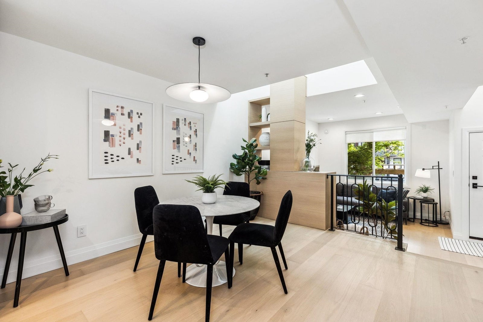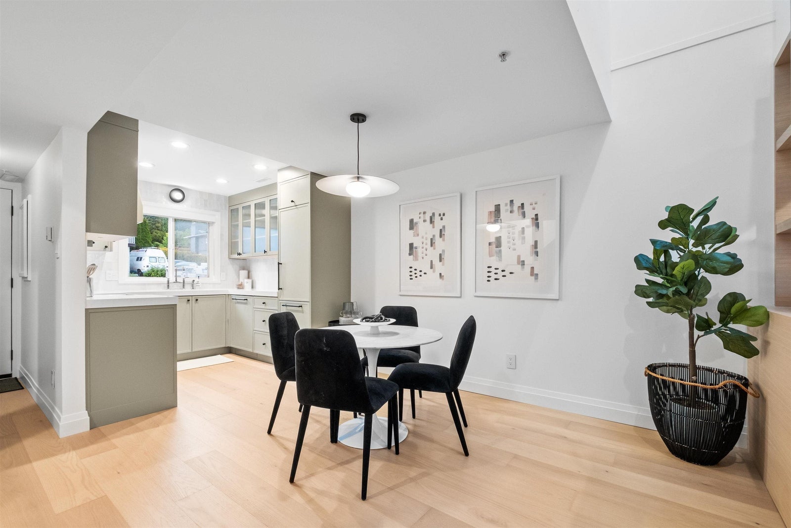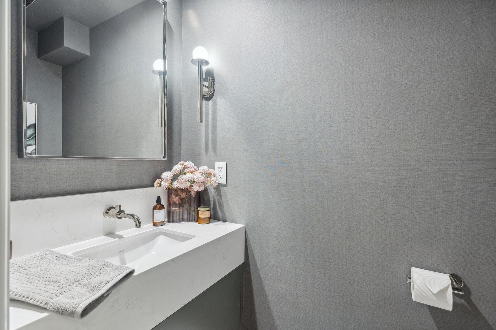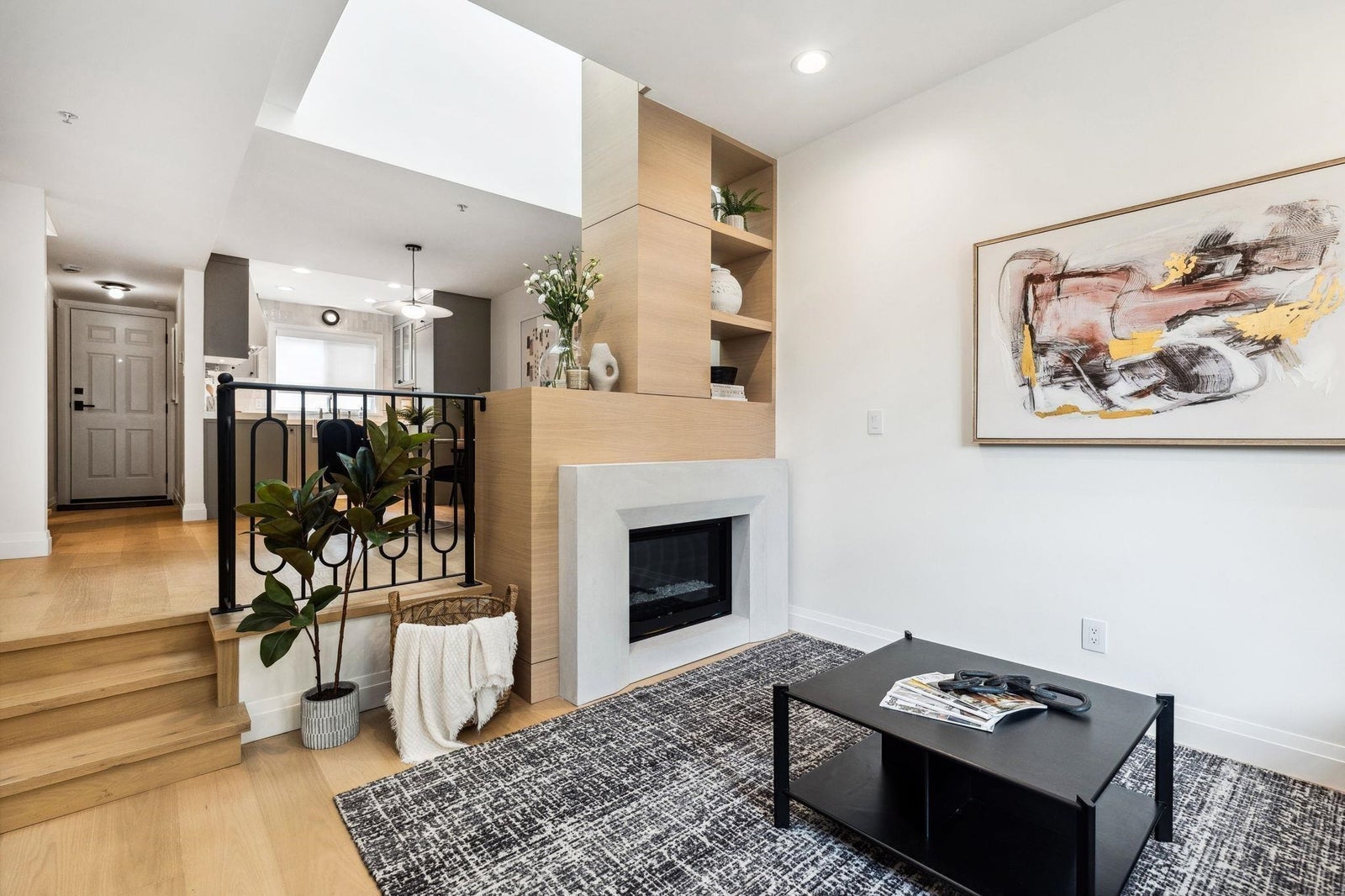 View this beautifully renovated designer townhome in the prestigious Upper Lonsdale neighbourhood. This stunning townhome exudes style & class with timeless design features that elevate your lifestyle. The fireplace feature is the centrepiece of the main living area, while the custom cabinetry & panelled appliances in the kitchen offer elegance & refinement. Designer features such as white oak floors, beautifully wallpapered bathrooms, designer wrought iron railings, & custom cabinetry make this space one of a kind. The primary bedroom offers an oversized walk-in closet & skylight ensuite with a stand-up glass shower. Enjoy the stunning views on your expansive rooftop lounge, perfect for entertaining summer barbecues or relaxing in the sun.