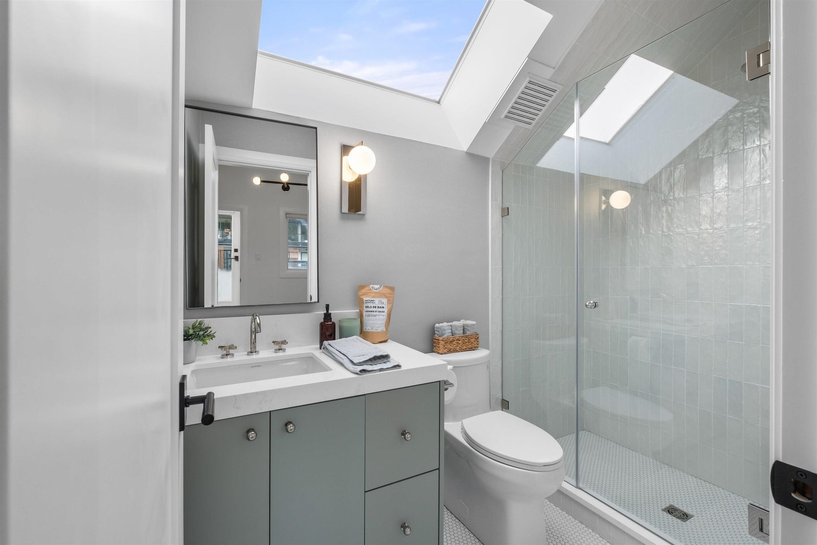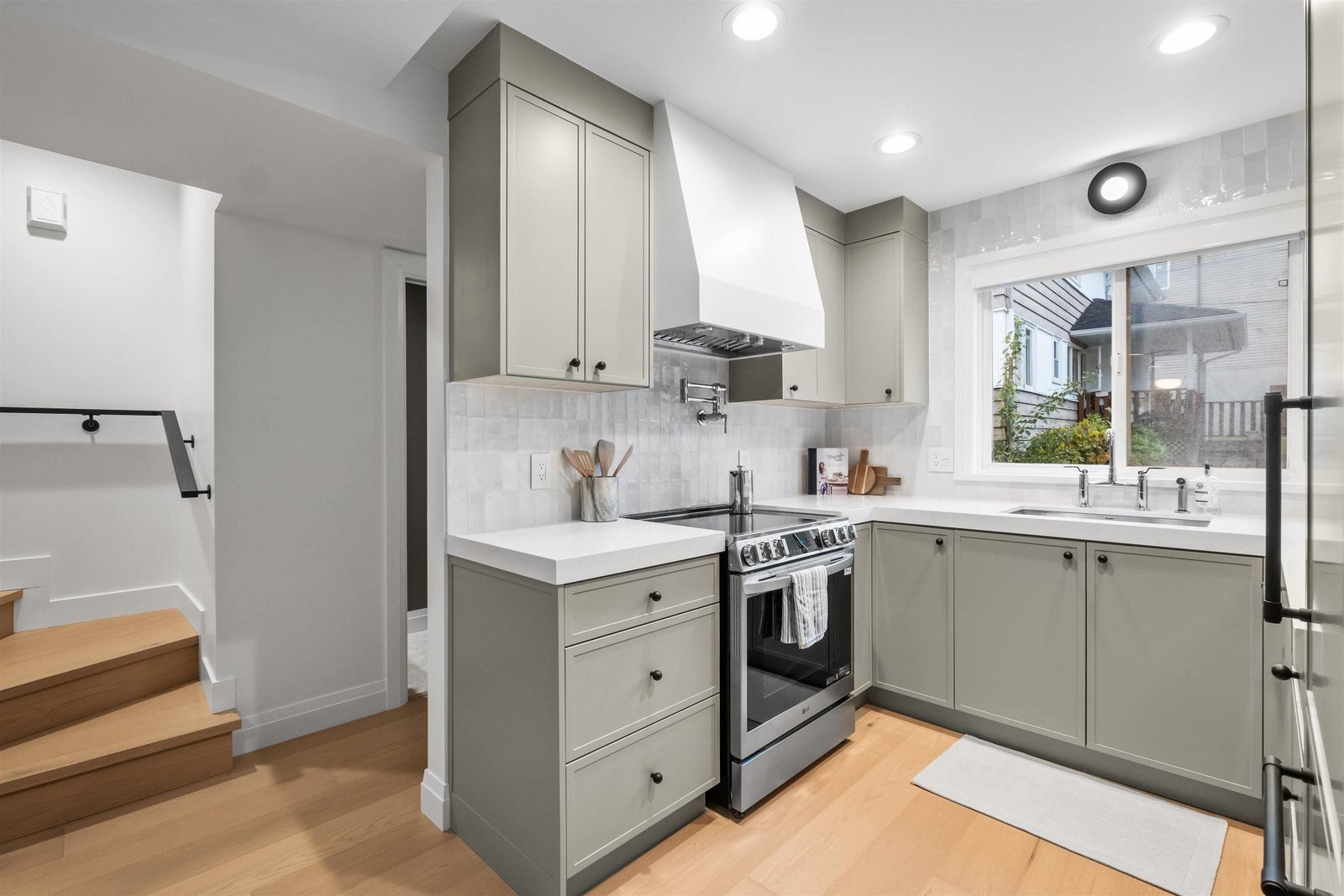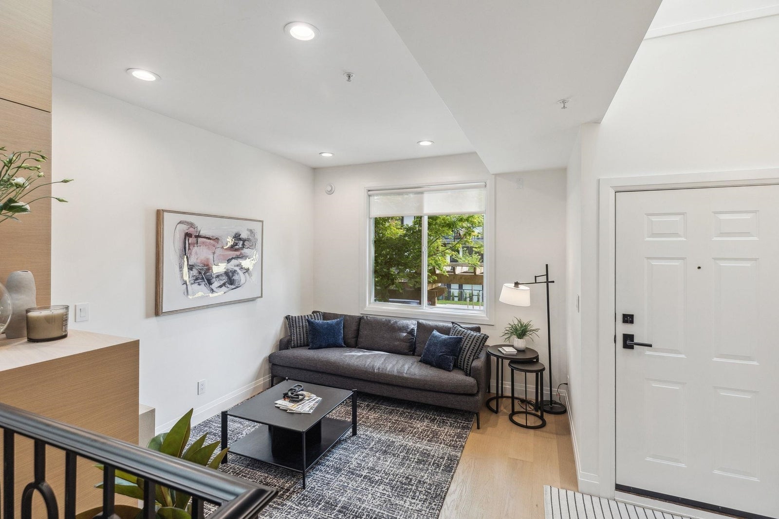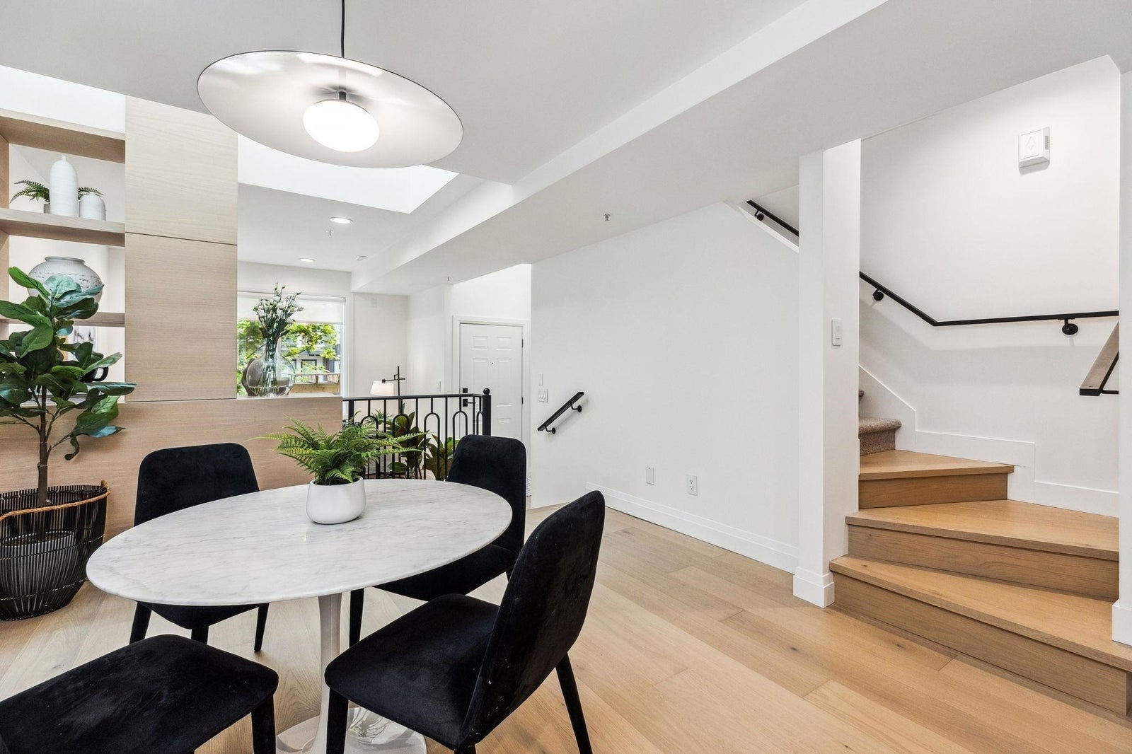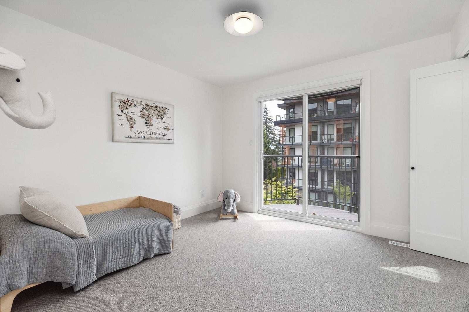 View this beautifully renovated designer townhome in the prestigious Upper Lonsdale neighbourhood. This stunning townhome exudes style & class with timeless design features that elevate your lifestyle. The fireplace feature is the centrepiece of the main living area, while the custom cabinetry & panelled appliances in the kitchen offer elegance & refinement. Designer features such as white oak floors, beautifully wallpapered bathrooms, designer wrought iron railings, & custom cabinetry make this space one of a kind. The primary bedroom offers an oversized walk-in closet & skylight ensuite with a stand-up glass shower. Enjoy the stunning views on your expansive rooftop lounge, perfect for entertaining summer barbecues or relaxing in the sun.