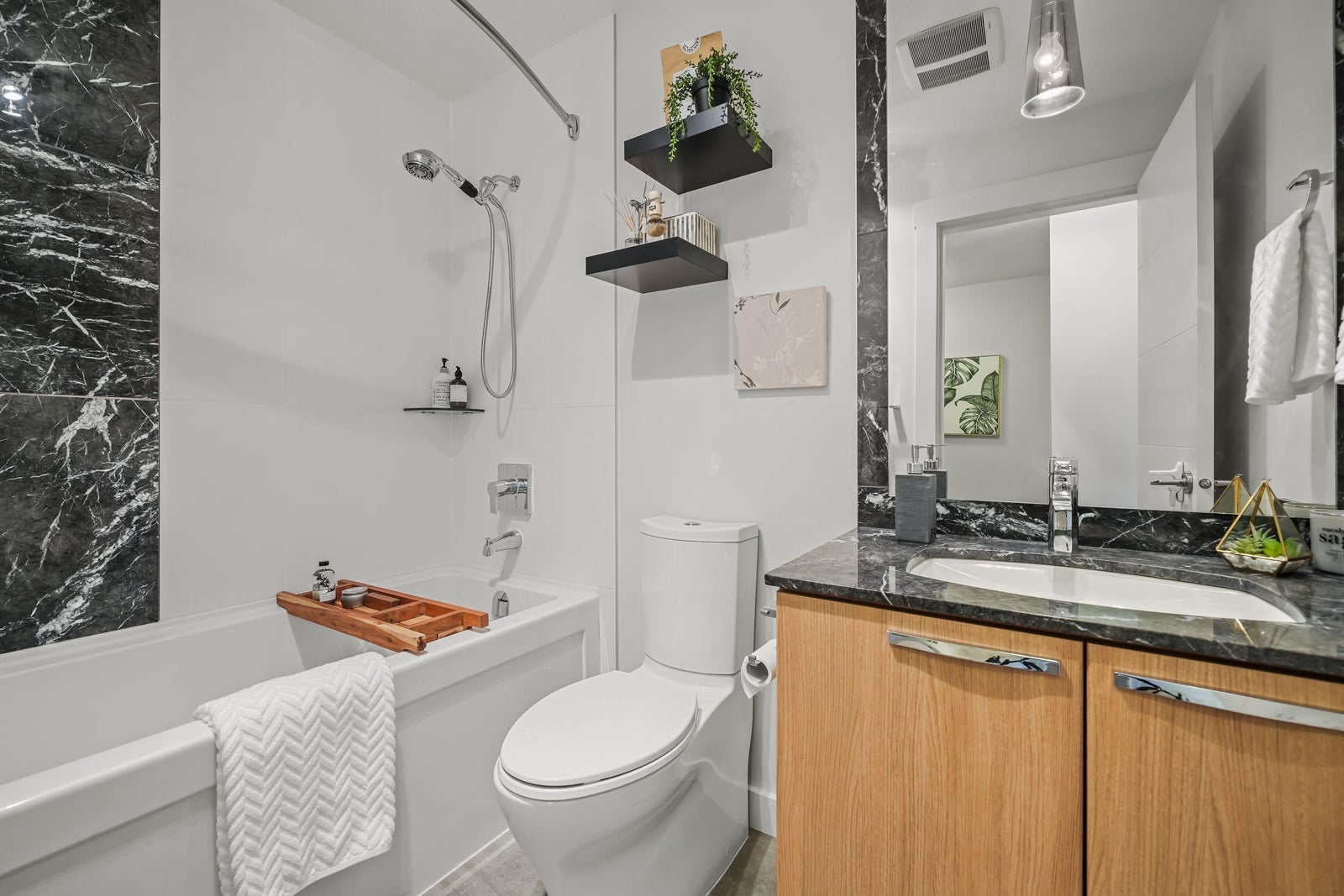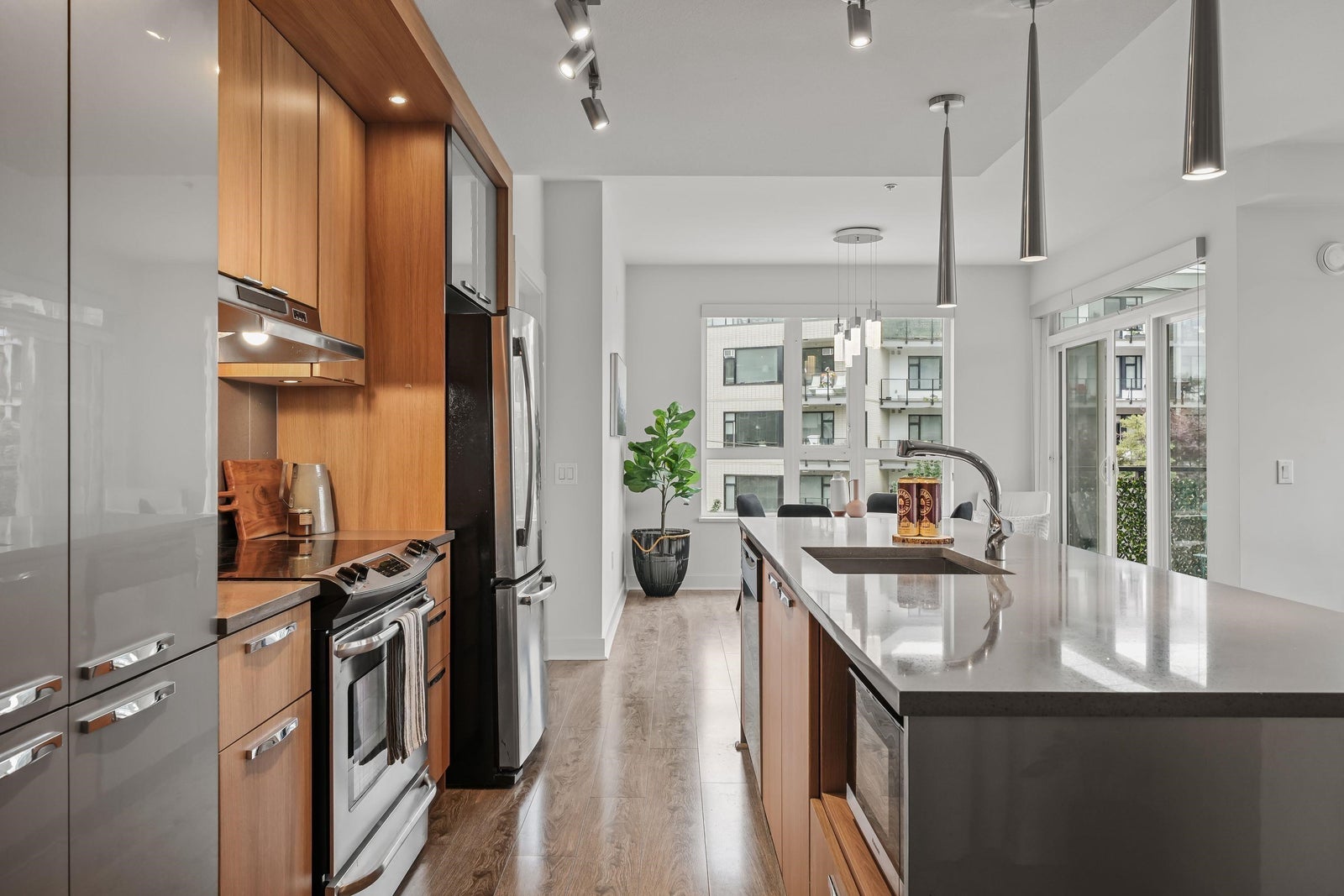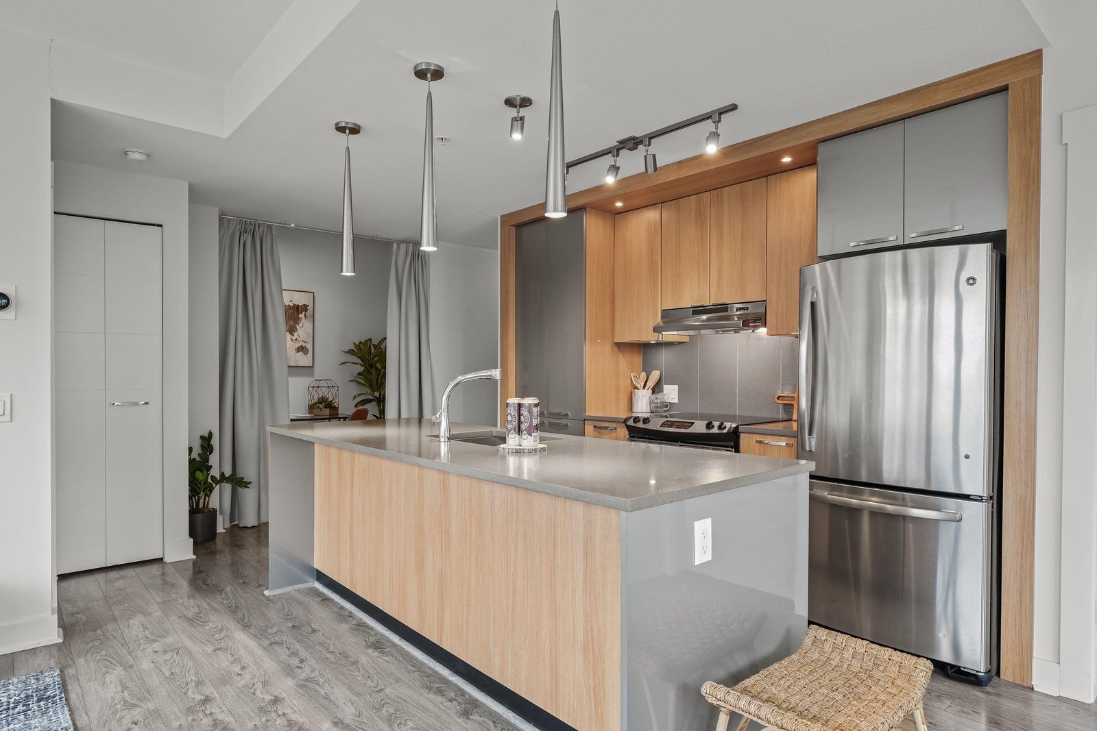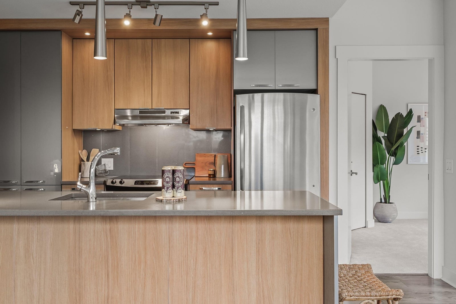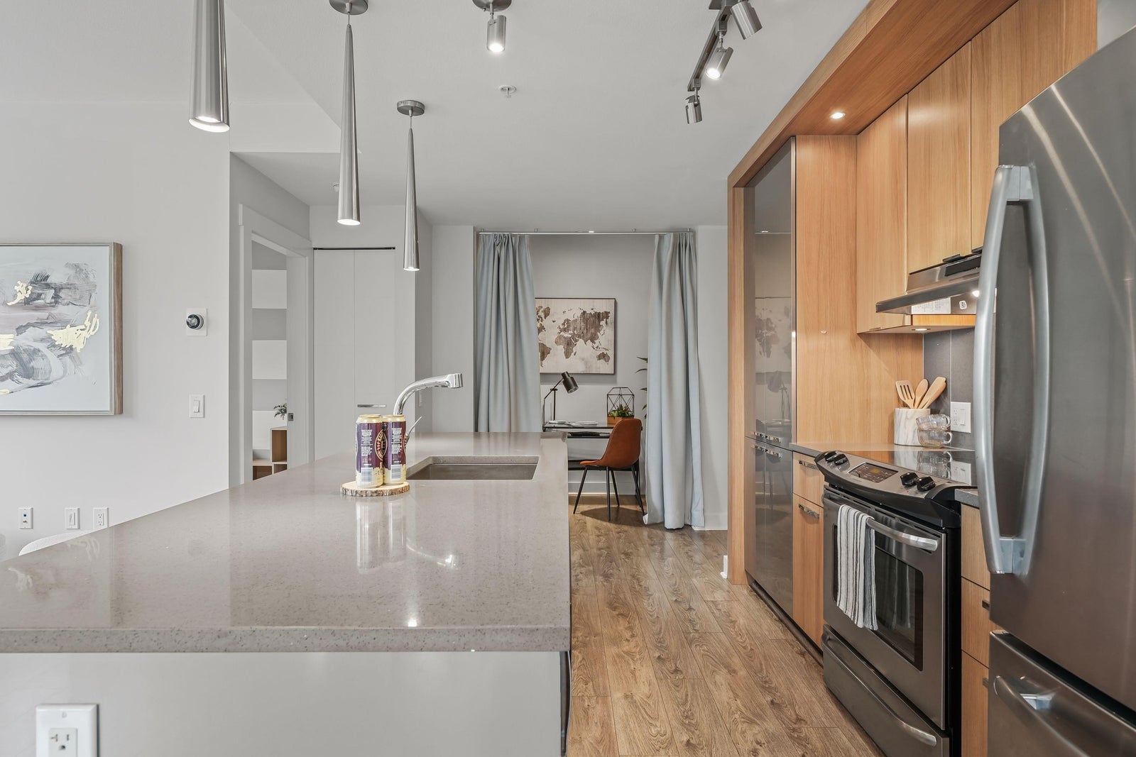 Exceptional two-bedroom plus den residence in North Vancouver's boutique Remix building. Offering a perfect blend of modern living and prime location, this immaculate corner unit features open-concept living, high-end finishes, a generous balcony, a gourmet kitchen with stainless steel appliances, an island breakfast bar and ample storage. The thoughtfully designed layout maximizes space, and large windows flood the home with natural light. Located in the vibrant Mosquito Creek neighbourhood, you’re steps away from local favourites like Nomad Coffee & Bakery, Black Kettle Brewing, the Spirit Trail and easy access to transit, the Lonsdale Quay SeaBus and the highway.