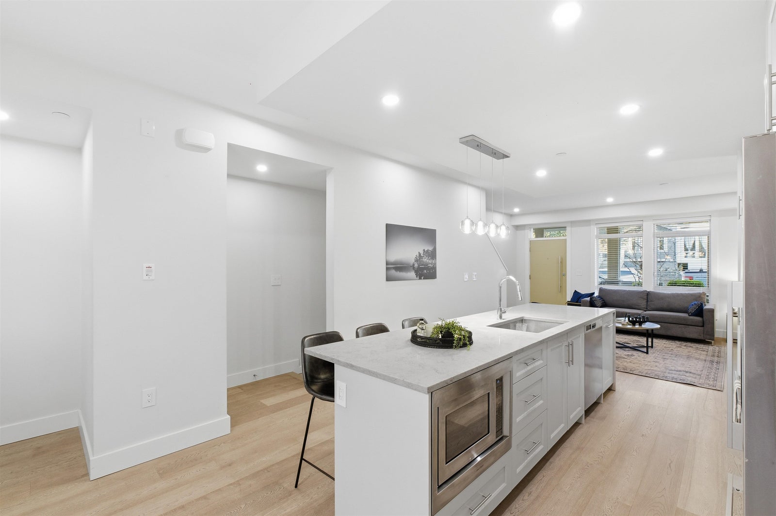 Experience expansive living in prestigious Upper Lonsdale. This rare 4-bedroom + den townhome offers 2,100 sq ft of thoughtfully designed space across multiple levels—perfect for growing families or those needing room to work, play, and entertain. Enjoy two full family rooms, ideal for separation of space or multi-generational living. A true home-like layout, featuring over-height ceilings, engineered hardwood floors, and a gourmet kitchen with a large entertainment island and premium Fisher & Paykel appliances. The walk-out direct-access garage adds everyday convenience, plus ample outdoor areas provide room to relax. Set within the boutique community of Queen’s Landing, you’re surrounded by top-rated schools, parks, cafés, grocery stores, and the charm of Upper Lonsdale.
