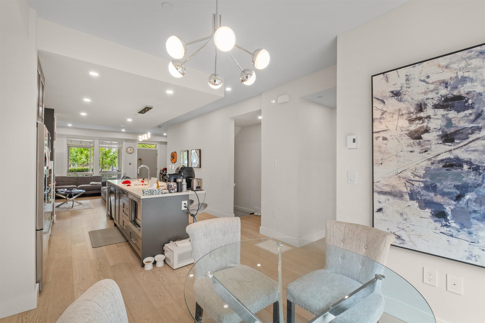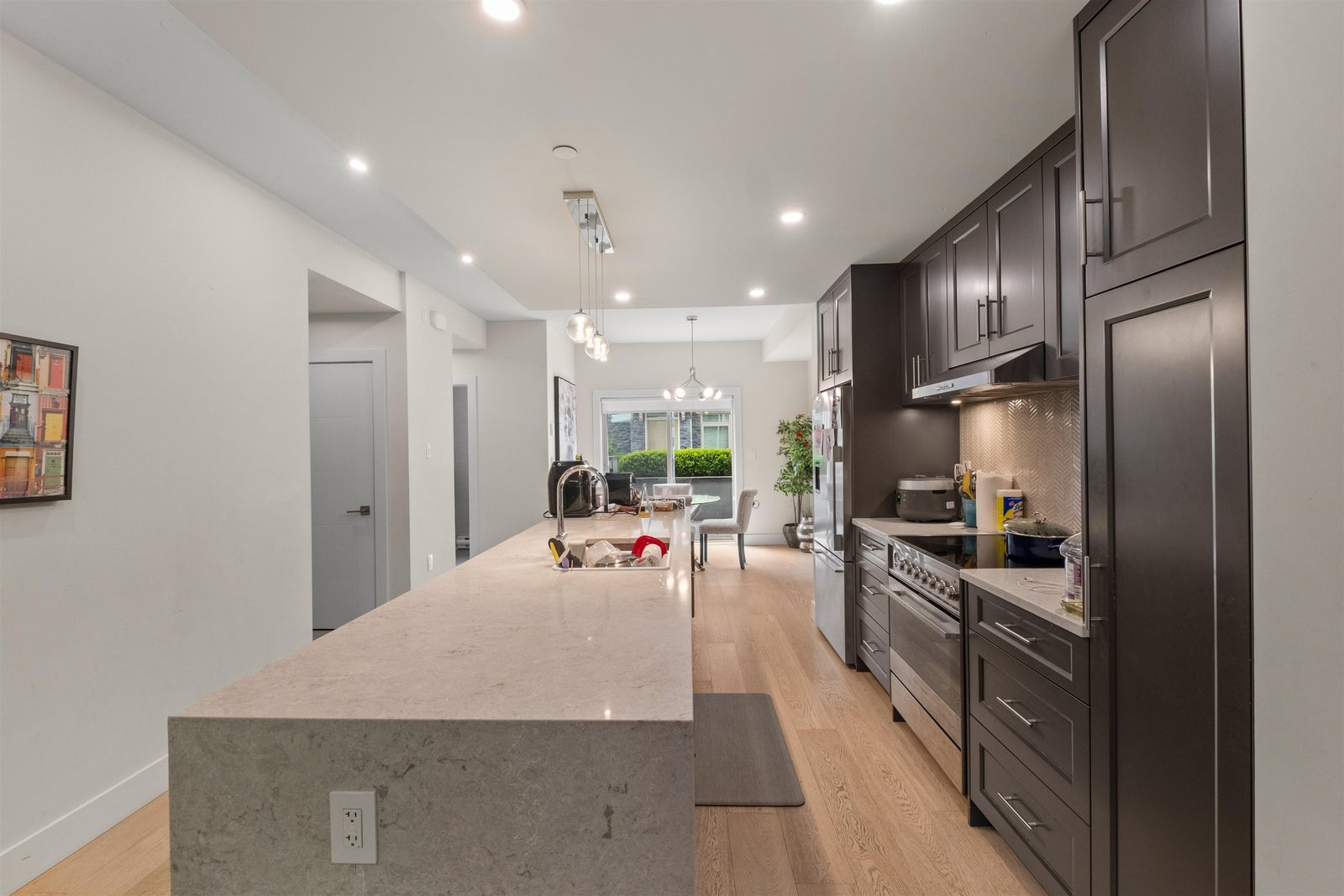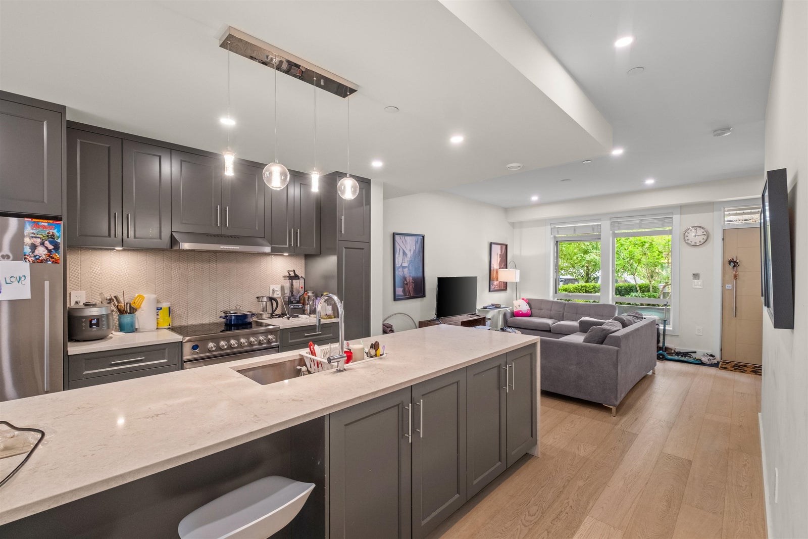 Rare opportunity in prestigious Upper Lonsdale—this expansive 3 bedroom + den townhome offers over 2,090 sq ft across four levels, ideal for families or multi-generational living. Thoughtfully designed with two separate family rooms for flexible living, over-height ceilings, and engineered hardwood floors throughout. The gourmet kitchen features a large island and premium Fisher & Paykel appliances, perfect for entertaining. Enjoy multiple outdoor spaces including patios and a deck totaling over 400 sq ft. Direct-access garage adds everyday convenience. Located in the boutique Queen’s Landing community, close to top-rated schools, parks, shops, and everyday amenities.